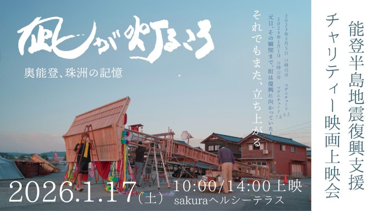 【佐倉市】「sakuraヘルシーテラス」で「第3回能登半島地震チャリティー映画上映会」が2026年1月17日(土)開催されます。