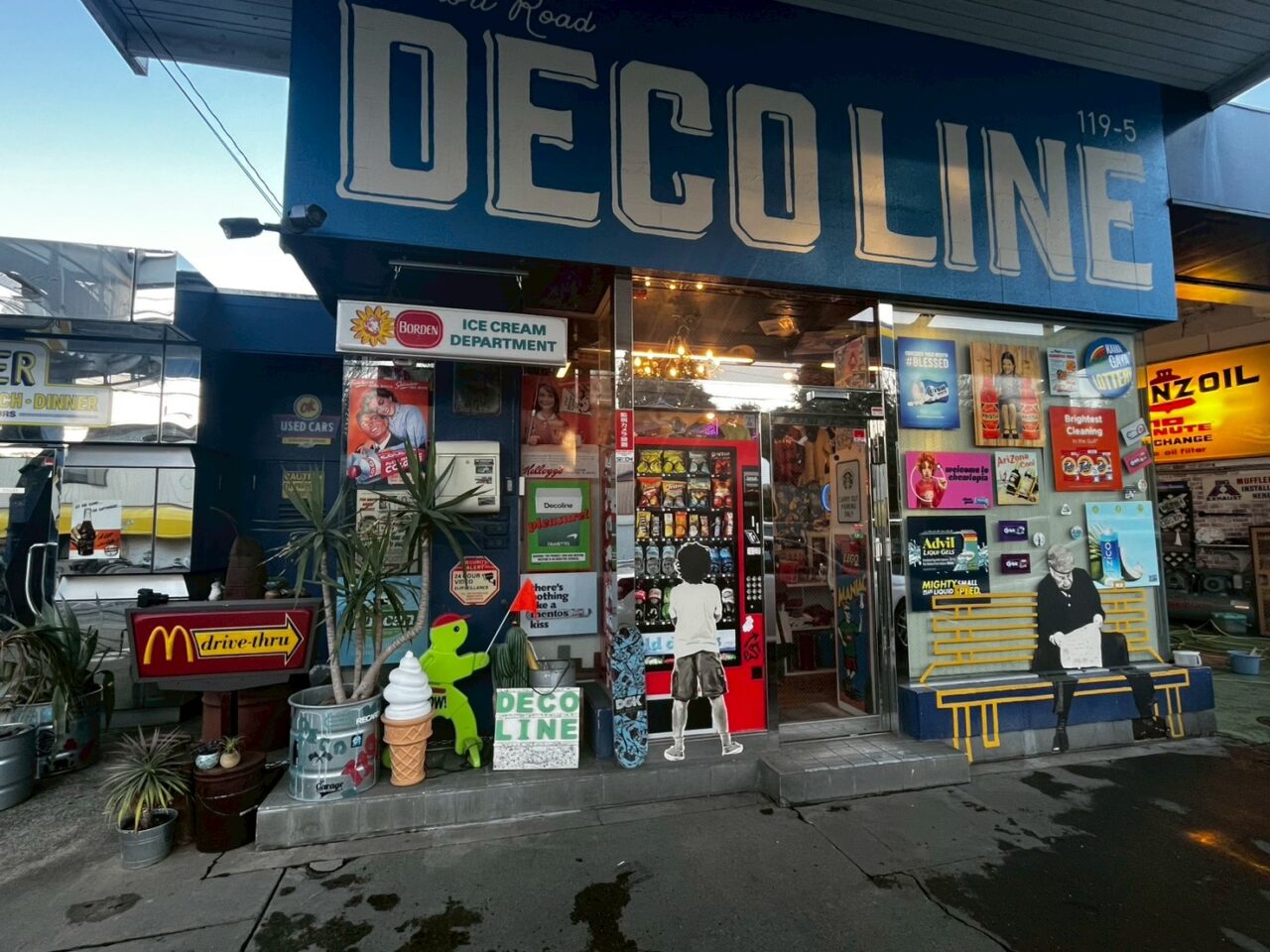 外から見ると、店名のDECO LINEが大きく描かれています。店名の由来についても伺うと、元々会社名が株式会社凸で、その凸とアルピナのデコラインから着想を得て名付けられそうです。「あくまで下ネタではないんですよ」と優しい笑顔でお聞かせいただきました。