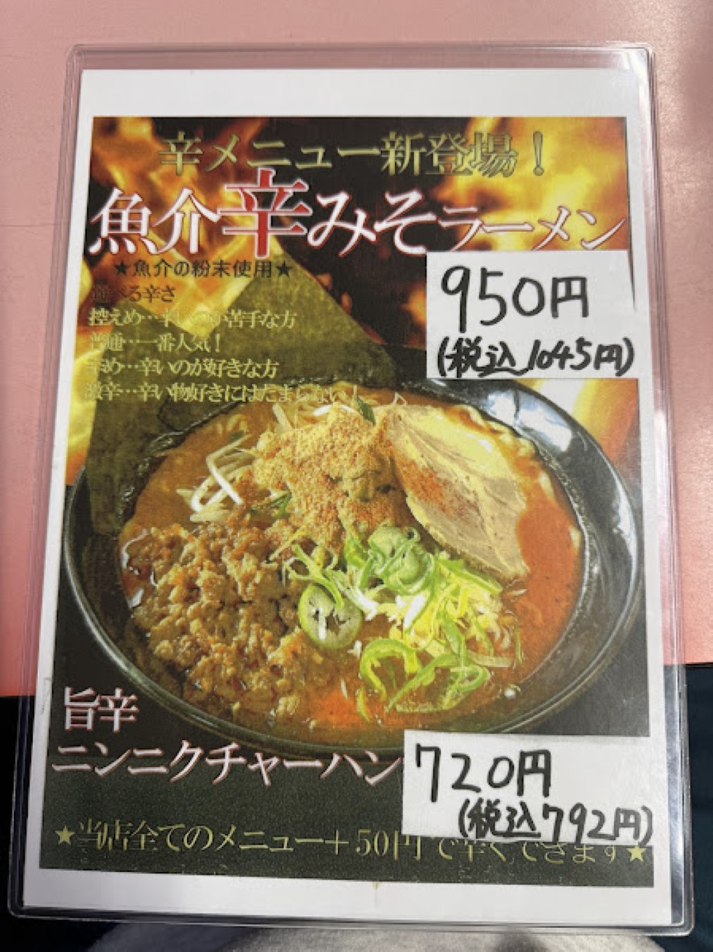 ※お店の全てのメニューがプラス50円で辛くできます。