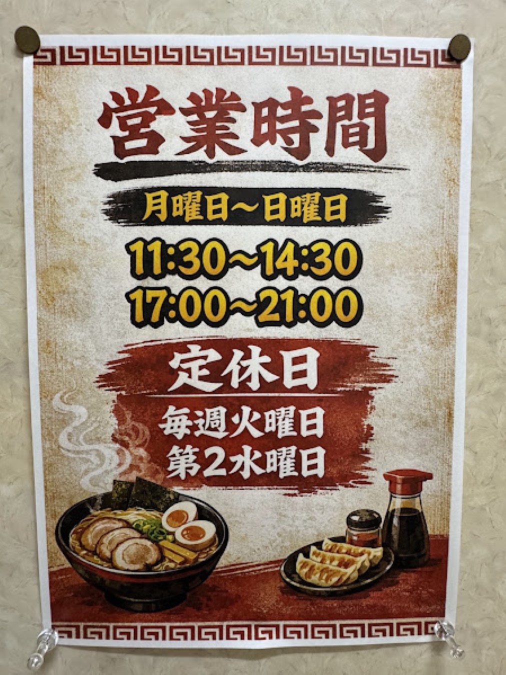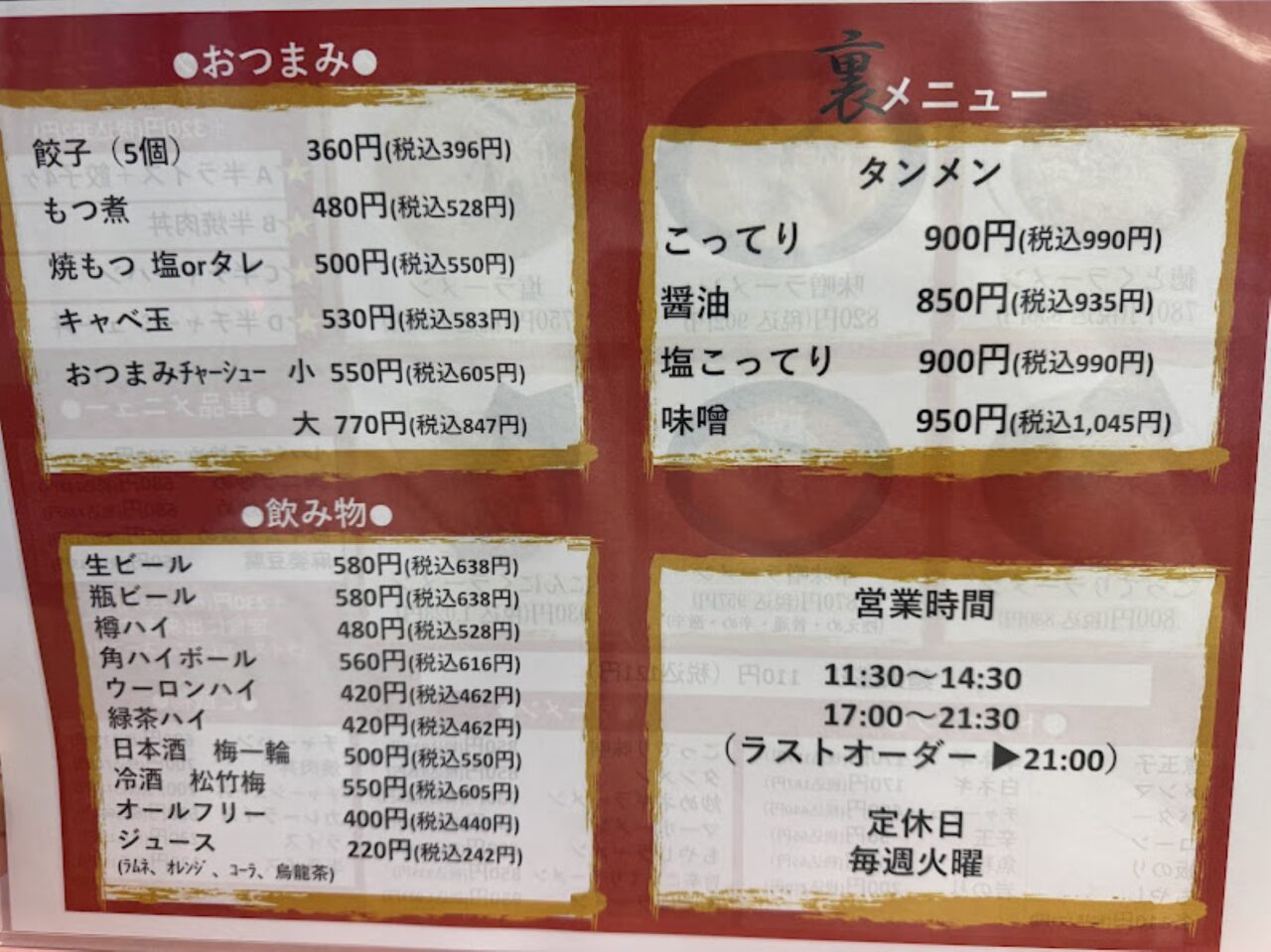 営業時間は変更があり17:00~21:30が17:00~21:00までに、定休日は毎週火曜日と第2水曜日がお休みになりました。