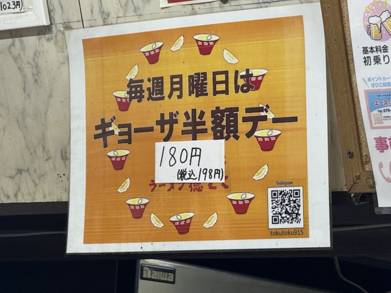 人気の毎週月曜日餃子半額は継続されていました! 物価高ながらの太っ腹サービスは本当に嬉しい限りです。徳とくさんの餃子は1個1個手作りで美味しいと評判です!!