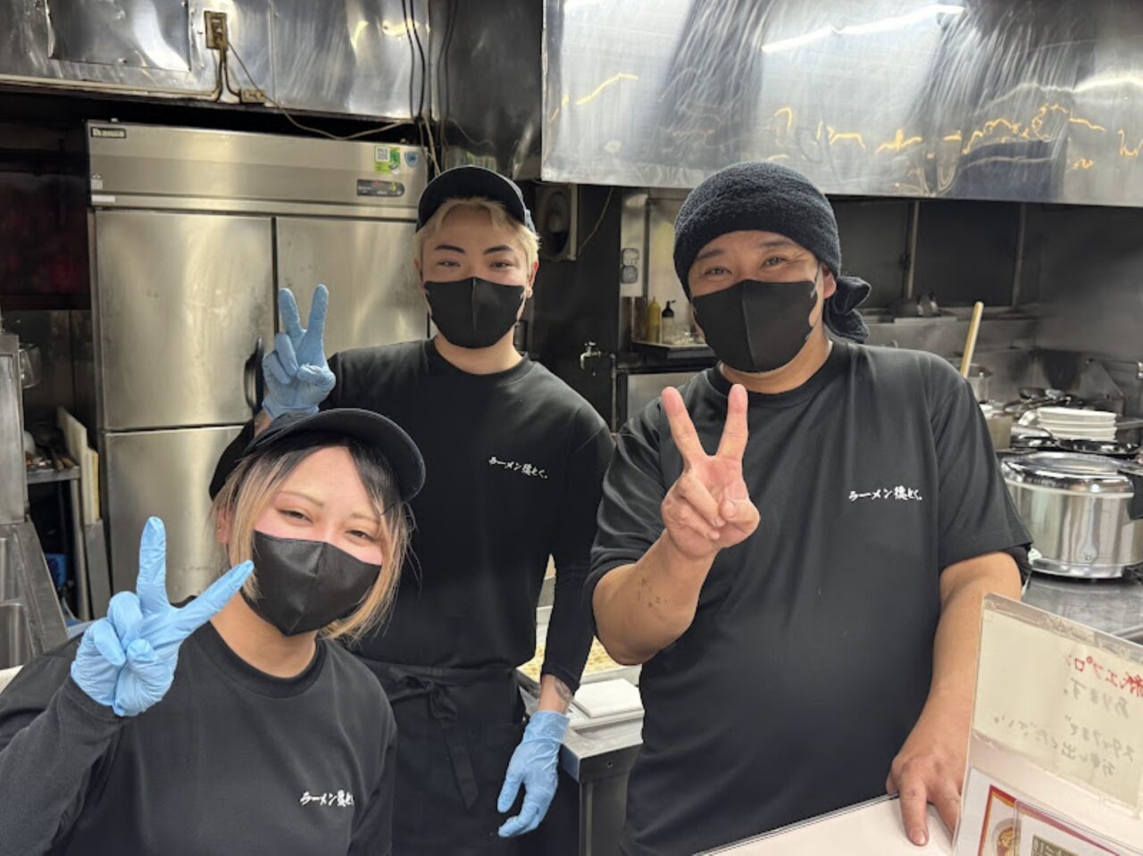 オーナー(右)とスタッフのみなさん。オーナーのお隣の方はオーナーの息子さんと聞いてビックリ! いつも元気いっぱいのスタッフのみなさんが出迎えてくれる、素敵なお店なのです!!