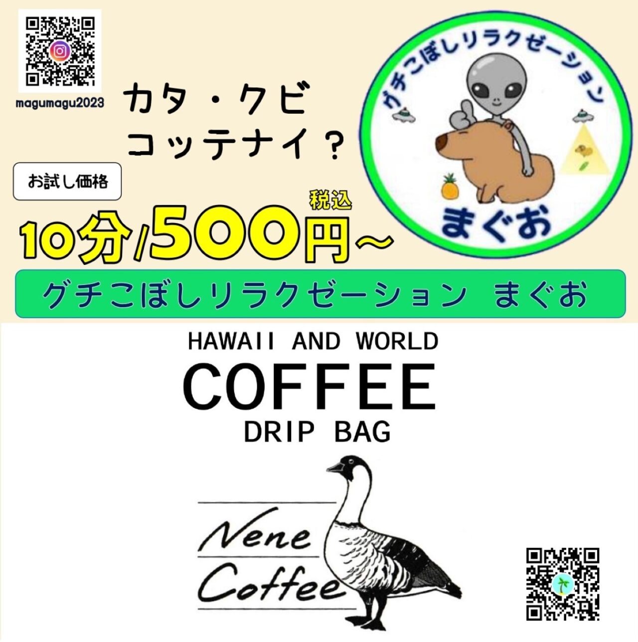 ◯グチこぼしリラクゼーション まぐお(もみほぐし ドリップバッグコーヒー)