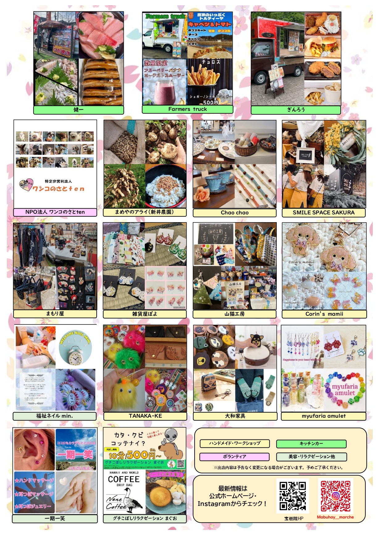 ※こちらに掲載されているチラシはネット掲載用に修正したもので、配布されている紙のチラシとは若干異なります。各出店者の詳細は公式Instagramにてご確認ください(出店内容は予告なく変更になる場合がございます)。